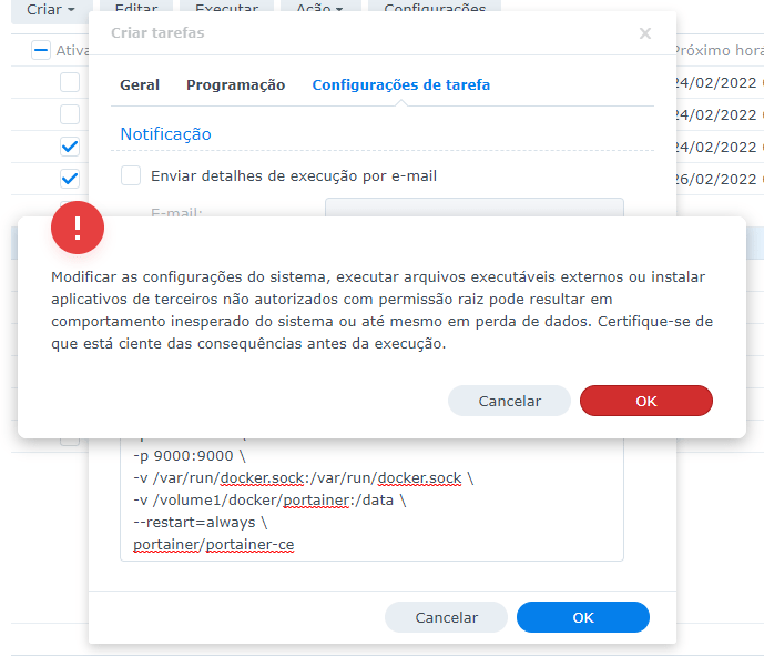 O aviso abaixo irá aparecer antes de concluir a criação da tarefa. Apenas clique em “Ok” que estará tudo pronto.