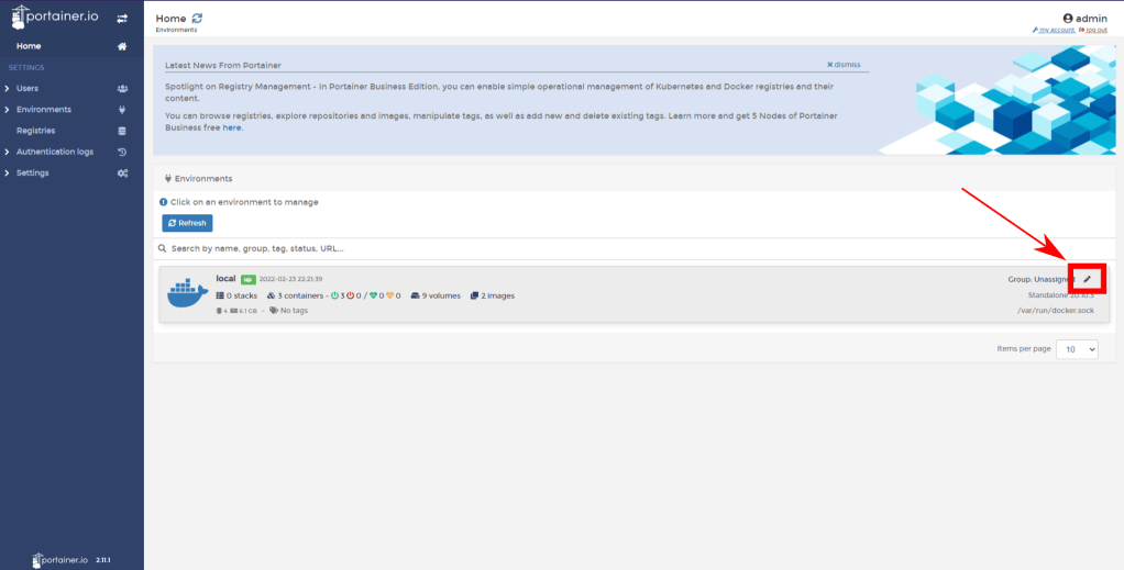 Pronto, você deve ter visto a notificação informando que o ambiente foi atualizado. Portainer já está pronto para ser usado normalmente!