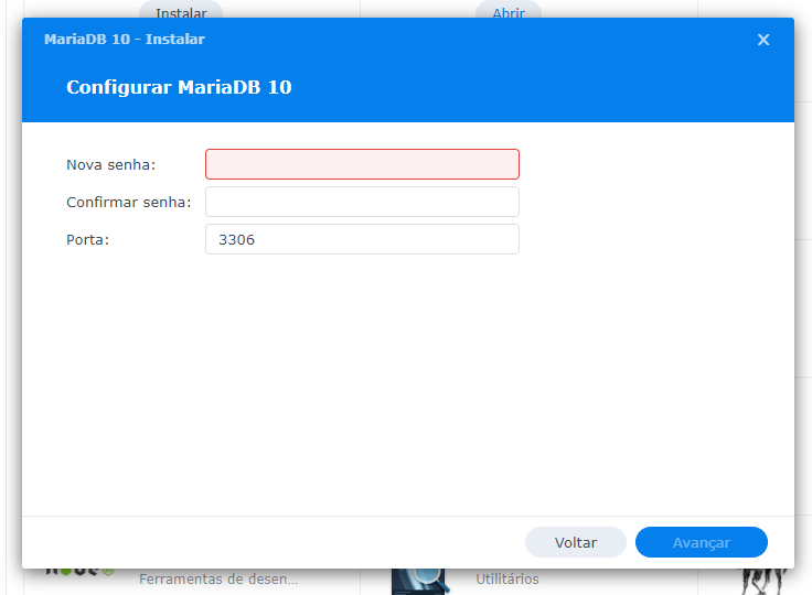 Em seguida, por questões de segurança, pode escolher uma nova senha para o banco de dados e uma porta também.