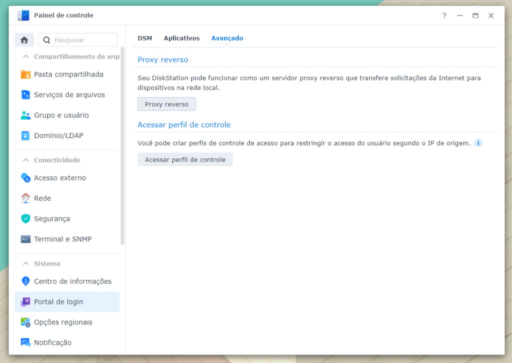 Selecione a aba “Avançado” e em seguida clique em “Proxy reverso”: