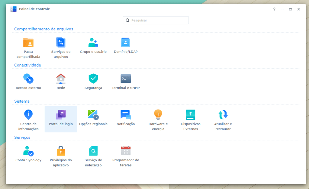 Abra o “Painel de Controle” e clique em “Portal de login”: