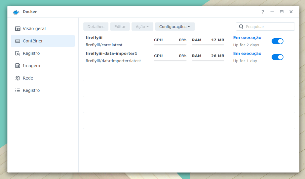 - O procedimento de instalação do Firefly pode ser todo através do GUI do pacote de Docker no Synology, ele não tem nenhuma restrição ou limitação quanto a isso, mas o procedimento através do script é mais rápido. Se tiver demanda para o passo-a-passo pelo GUI, entre em contato que farei um só nesse formato.