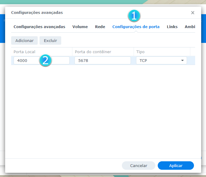 Na aba “Configuração de porta”, coloque a porta que você definiu anteriormente: